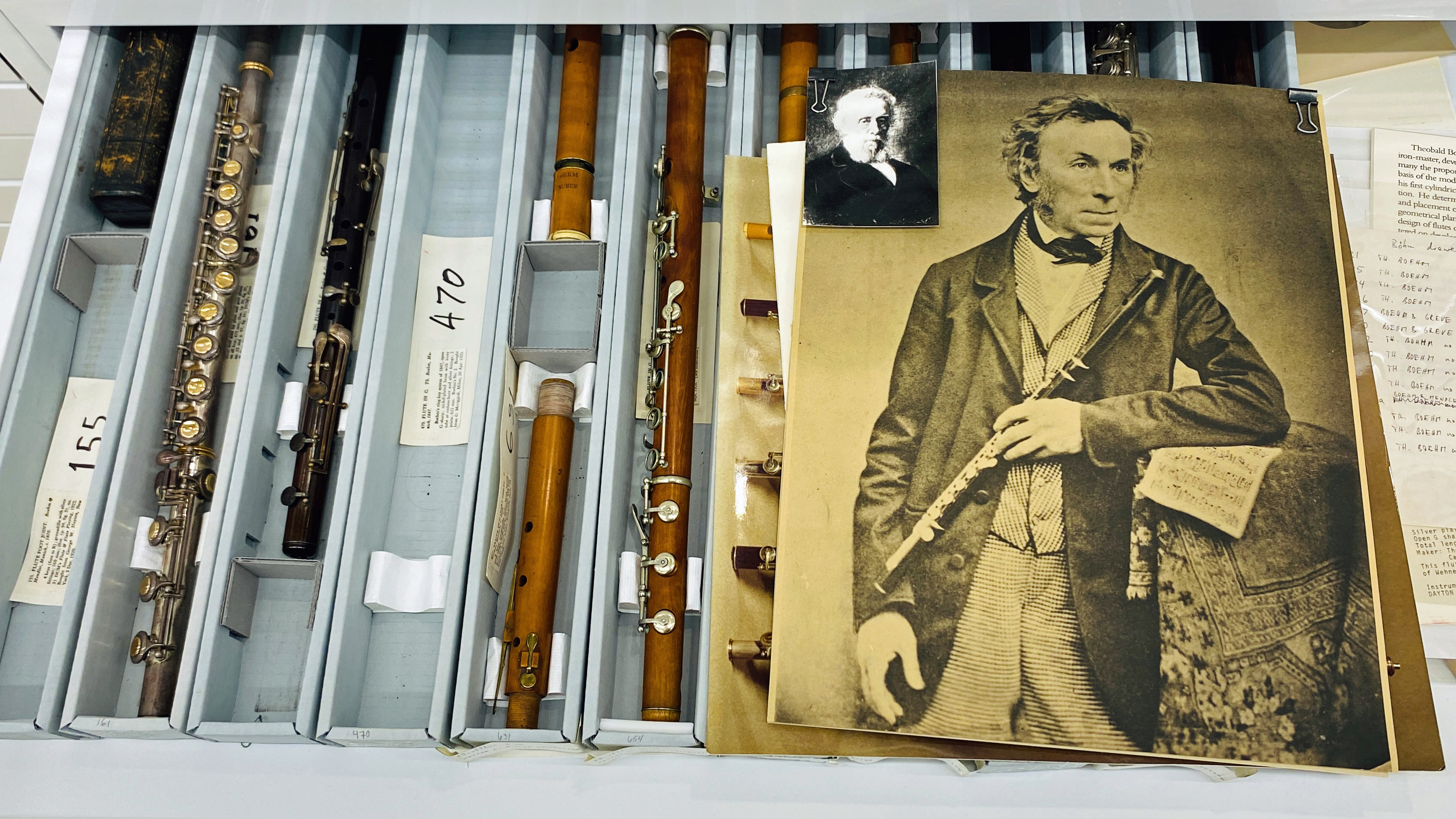 Fittingly, one of Ward-Bamford’s cherished flutes is a Civil War–era fife played by Dayton C. Miller’s father. Though broken in half, it holds immense historical significance for the collection. Another favorite is an anonymous mid-19th-century “walking stick” flute, crafted from wood with four keys resembling bumps on a branch. Its aesthetic and tactile appeal enchant Ward-Bamford. When asked about a flute she wishes was in the collection, she mentions Georges Barrère’s platinum flute by Haynes.